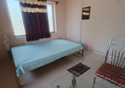On the First Floor, we have 03 Bedrooms, a Sitting Area for all guests to come together and enjoy an evening of discussions and casual chats and a Common balcony with views of Panchakot Hills on one side and Panchet lake on the other.
